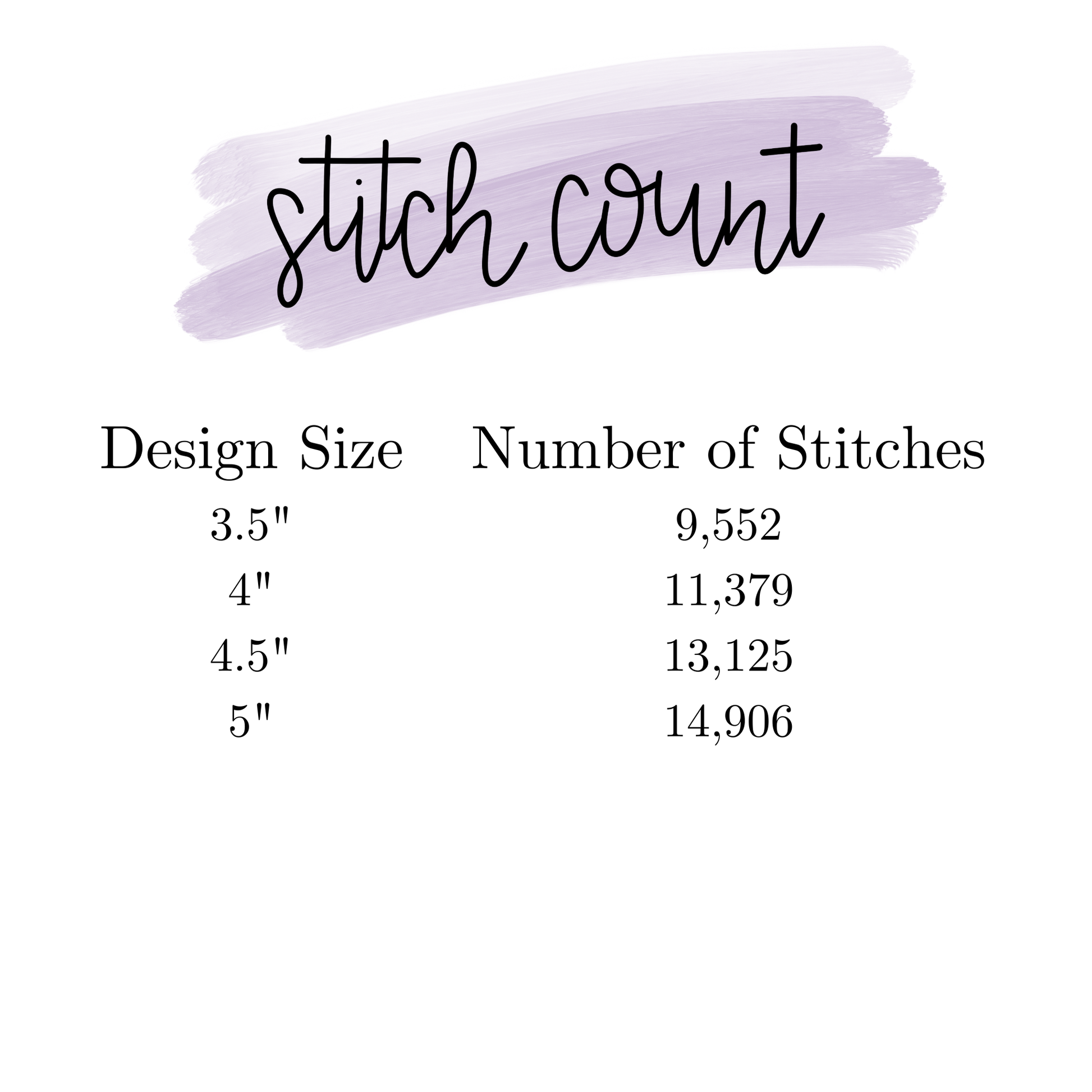4 sizes included: 3.5", 4", 4.5", 5"(width of design)